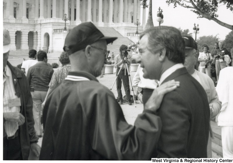 - Congressman Nick Rahall (D-WV) speaking with an unidentified man at a Black Lung Association rally at the United States Capitol building.