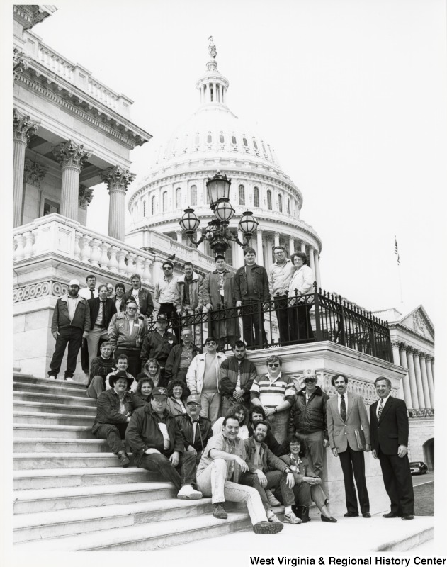 - On the far right, Representative Nick J. Rahall (D-W.Va.) stands for a photograph with Davis & Elkins College's Veterans Upward Bound Program in front of the capitol building.