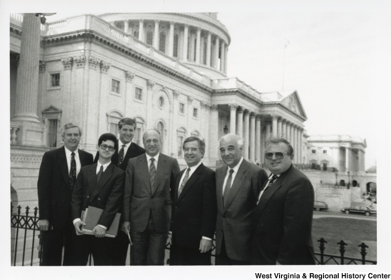 - Third from the right, Representative Nick J. Rahall (D-W.Va.) stands for a photograph with six unidentified men in front of the United States Capitol building.