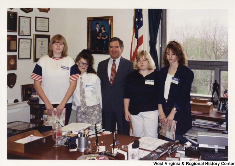 - In the center, Representative Nick J. Rahall (D-W.Va.) stands for a photograph with four unidentified students from Logan County, WV.