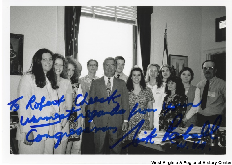 - Congressman Nick Rahall (D-WV) with Boone County students in his D.C. office. The photo is signed: "To Robert Cheeck, Warmest regards from your Congressman, Nick Rahall, W.Va. "