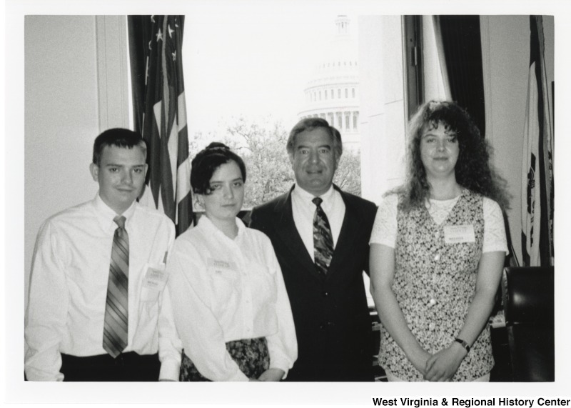- Congressman Nick Rahall (D-WV) with three unidentified students in D.C. office.