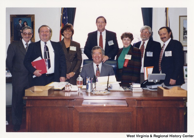 - Seated behind his desk, Representative Nick J. Rahall (D-W.Va.) smiles for a photograph with the West Virginia Housing Authority. Those present in the photograph include: David Riggs, Bill Dotson, Marvin Gray, Tony Buzzi, Rossmeyer, Judith Priest, and Manuel Cartelle.