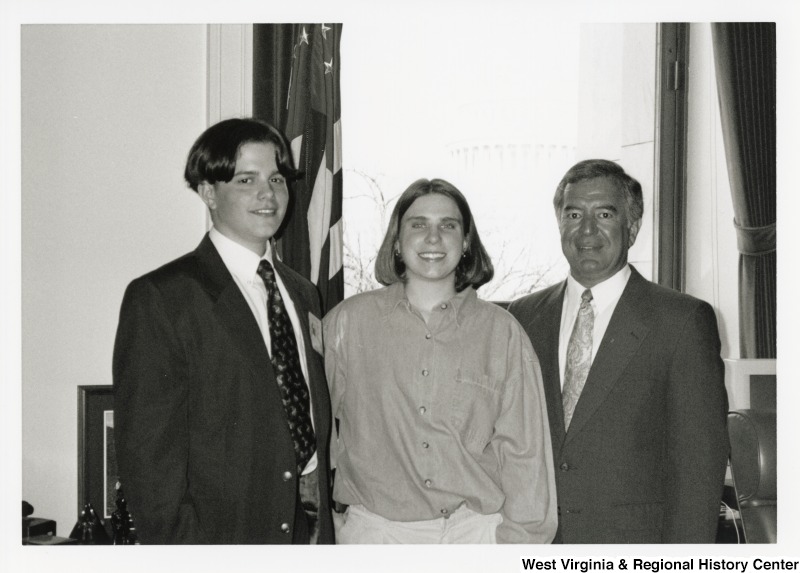 - Photograph of Congressman Rahall with Shady Springs High School students Dan Miller and Alissa Pilkington