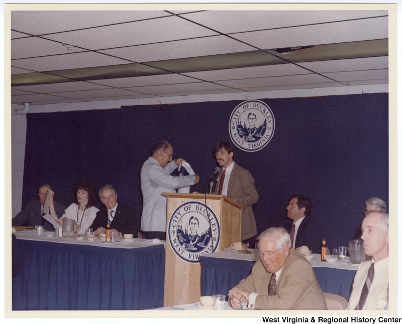 - Photograph of Congressman Rahall, Senators Randolph and Byrd at groundbreaking of Beckley sewage treatment plant banquet