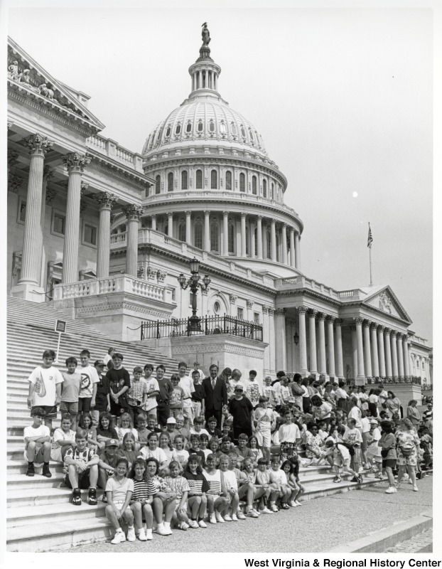 - Photograph of Congressman Rahall with Ona Elementary students at the U.S. Capitol building