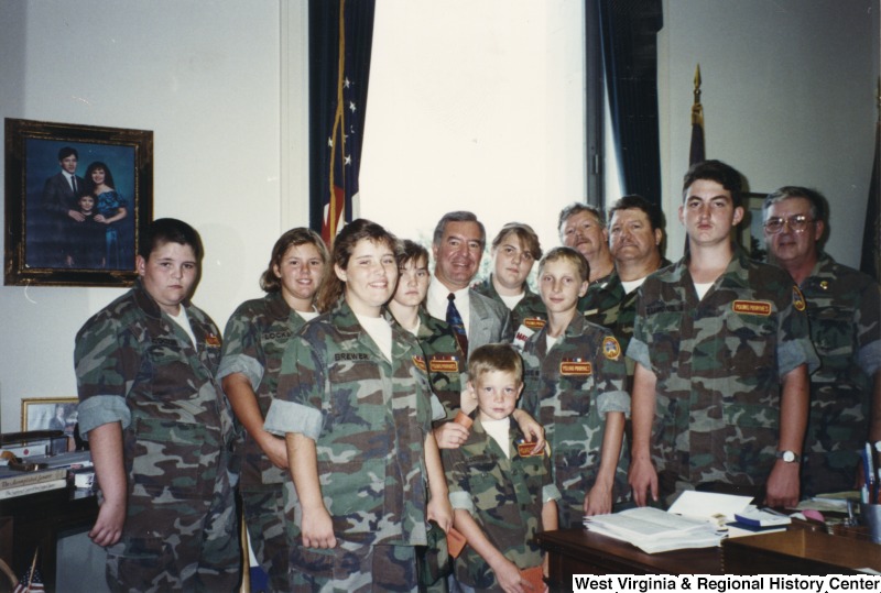 Photograph of Congressman Rahall with an unidentified group from Young Marines of Tug Valley
