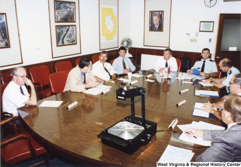 - Representative Nick J. Rahall (D-W.Va.) sits at the end of a table surrounded by unidentified men of the Army Corps of Engineers.
