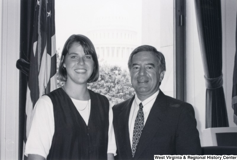 - On the right, Representative Nick J. Rahall (D-W.Va.) stands for a photograph with an unidentified woman.