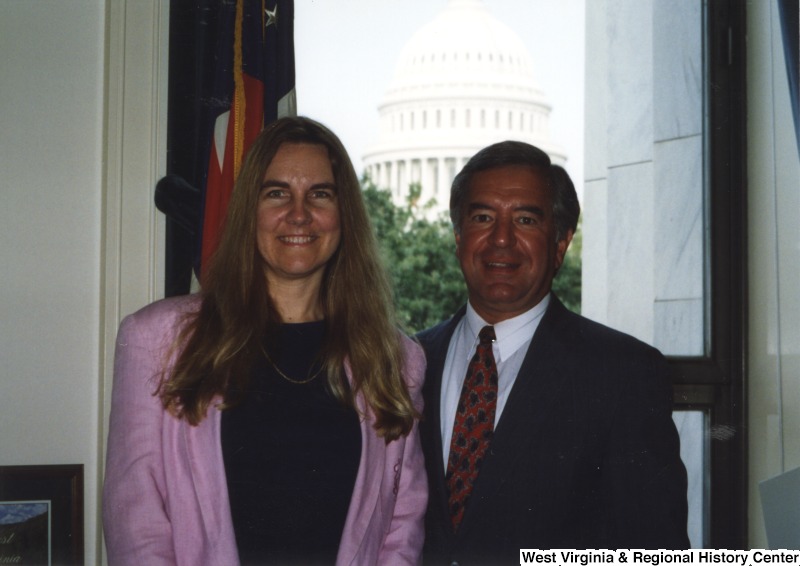 - On the right, Representative Nick J. Rahall (D-W.Va.) stands for a photograph with an unidentified woman while the United States Capitol can be seen in the background.