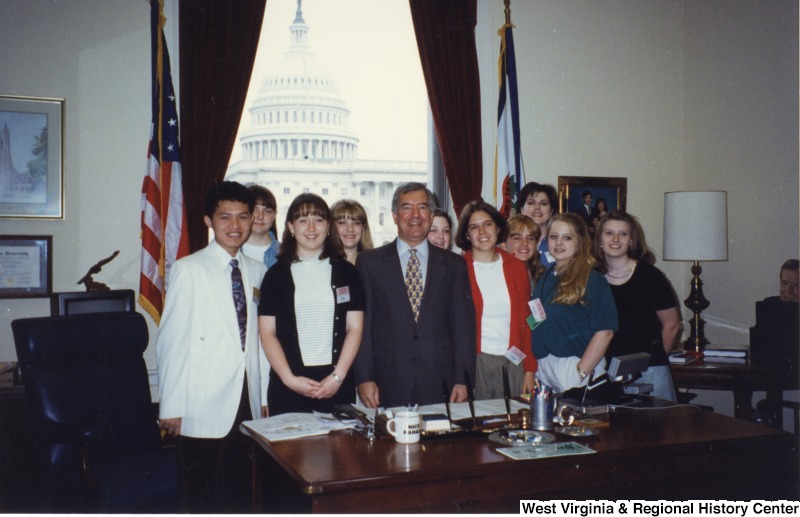 - Congressman Nick Rahall (D-WV) with a group of unidentified students from Daniels, West Virginia in his D.C. office.
