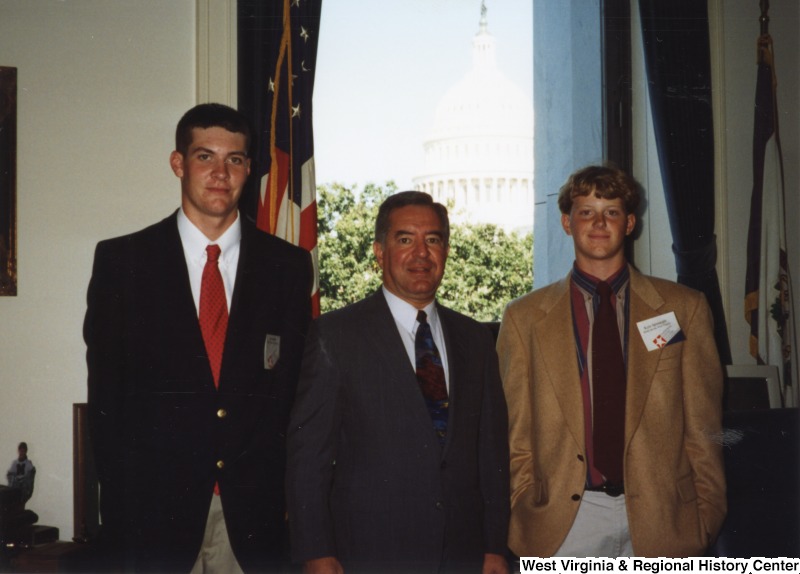 - Photograph of Congressman Rahall with two unidentified men from Congressional Youth Leadership