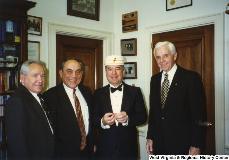 - Second from the right, Representative Nick J. Rahall (D-W.Va.) wears a Masonic hat and smiles for a photograph with three unidentified men.