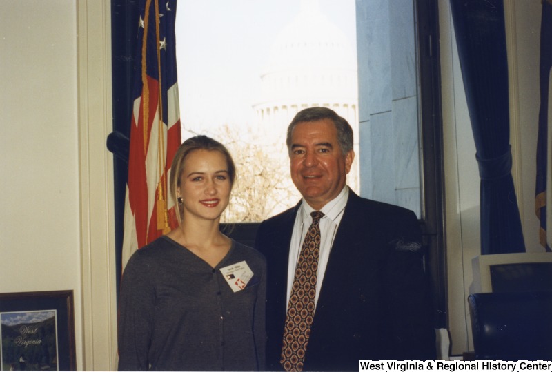 - On the right, Representative Nick J. Rahall (D-W.Va.) stands with an unidentified woman.