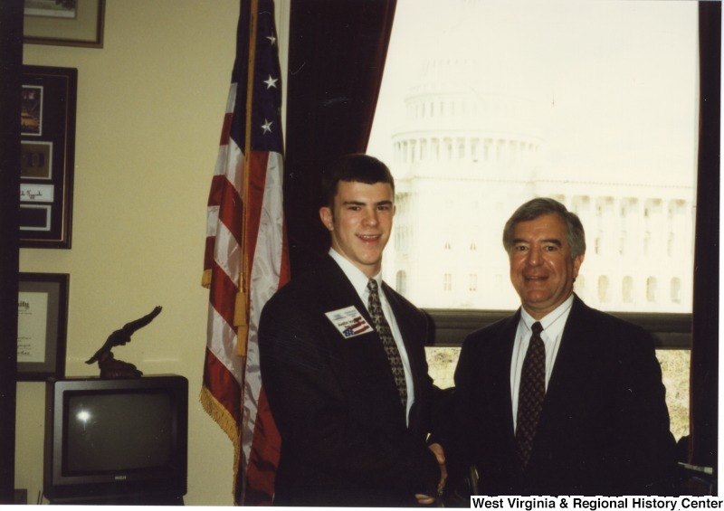 - Photograph of Congressman Rahall with WV student Justin Ingram