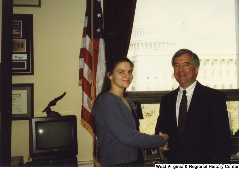 - Congressman Nick Rahall (D-WV) with West Virginia student Kate Hopta in his D.C. office.