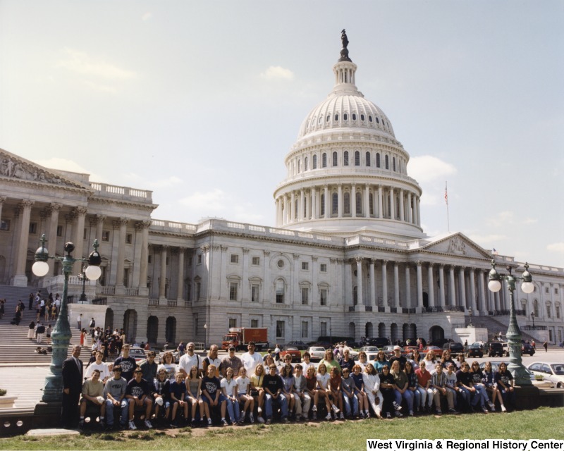 - Photograph of Congressman Rahall with Glade Jr. High students in front of the U.S. Capitol building