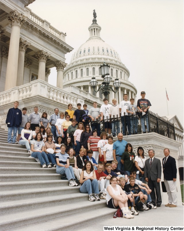 - Photograph of Congressman Rahall with Webster Springs Jr. High students in front of the U.S. Capitol building