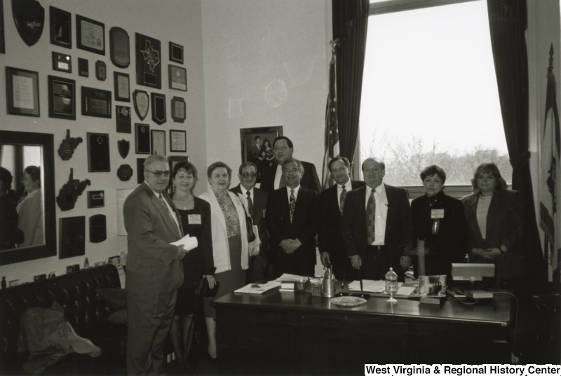 Photograph of Congressman Rahall with a group of unidentified people around his desk
