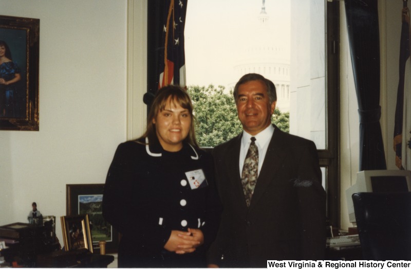 - On the right, Representative Nick J. Rahall (D-W.Va.) stands with an unidentified woman from the National Young Leaders Conference.