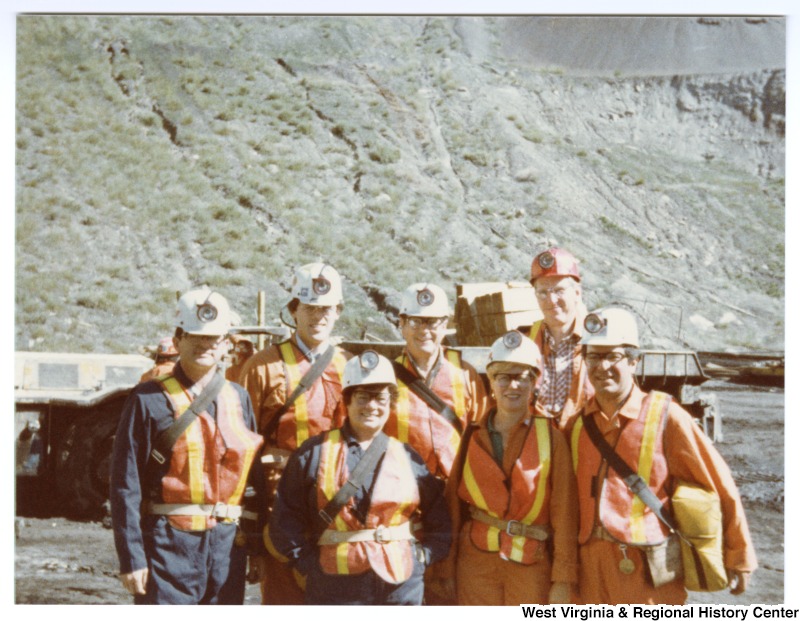 - Congressman Nick Rahall, II (front right) with an unidentified group of people in miners' uniforms at Rocky Mountain Energy Company in Wyoming.