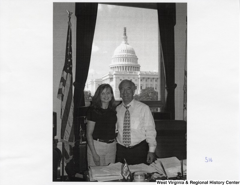 - On the right, Representative Nick J. Rahall (D-W.Va.) stands for a photograph in his office with an unidentified woman.