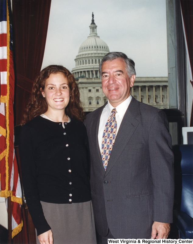 - Photograph of Congressman Rahall with an unidentified female summer intern in his D.C. office