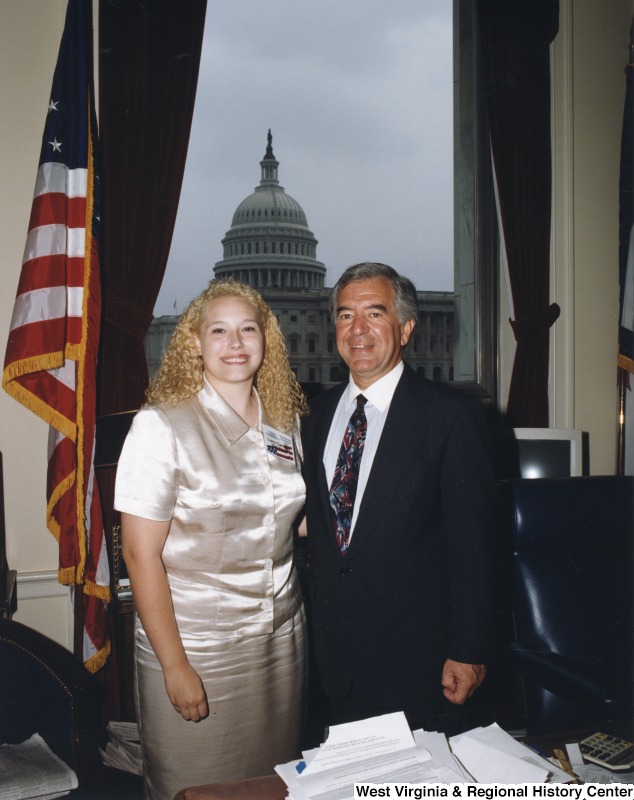 - Photograph of Congressman Rahall with an unidentified female summer intern in his D.C. office