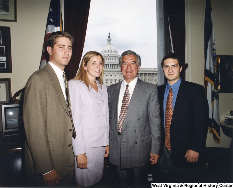 - Congressman Rahall with three unidentified summer interns in his D.C. office.