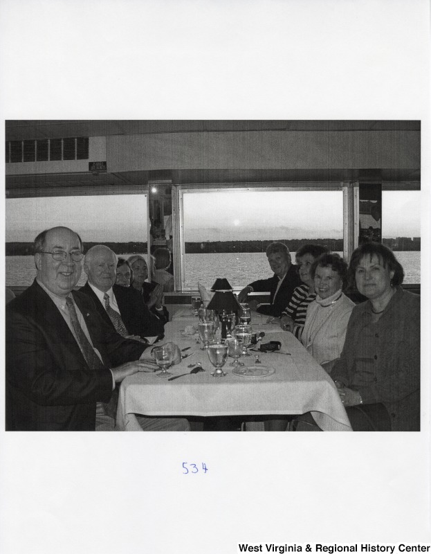 - Photograph of eight unidentified people sitting at a table