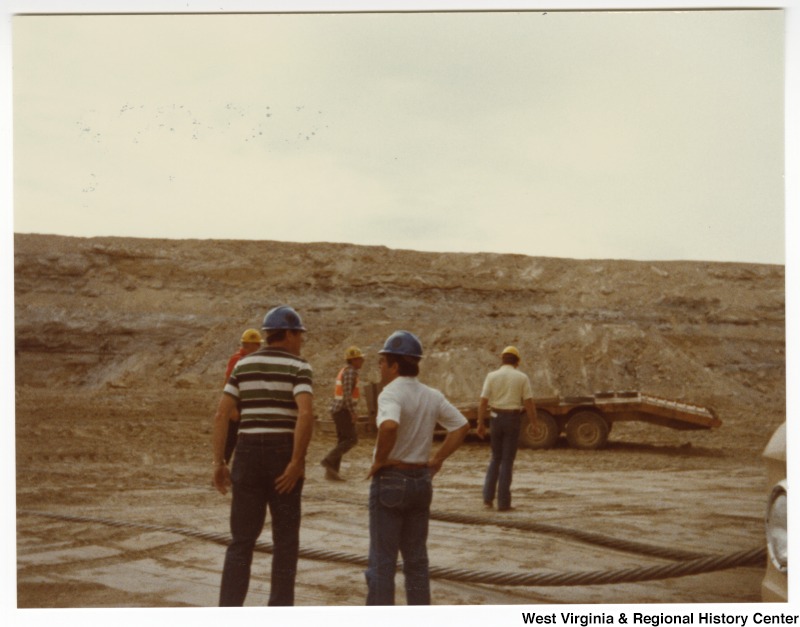 - Congressman Nick Rahall, II (front, right) with an unidentified man on a tour at Rocky Mountain Energy Company. Three unidentified men can be seen in the background.
