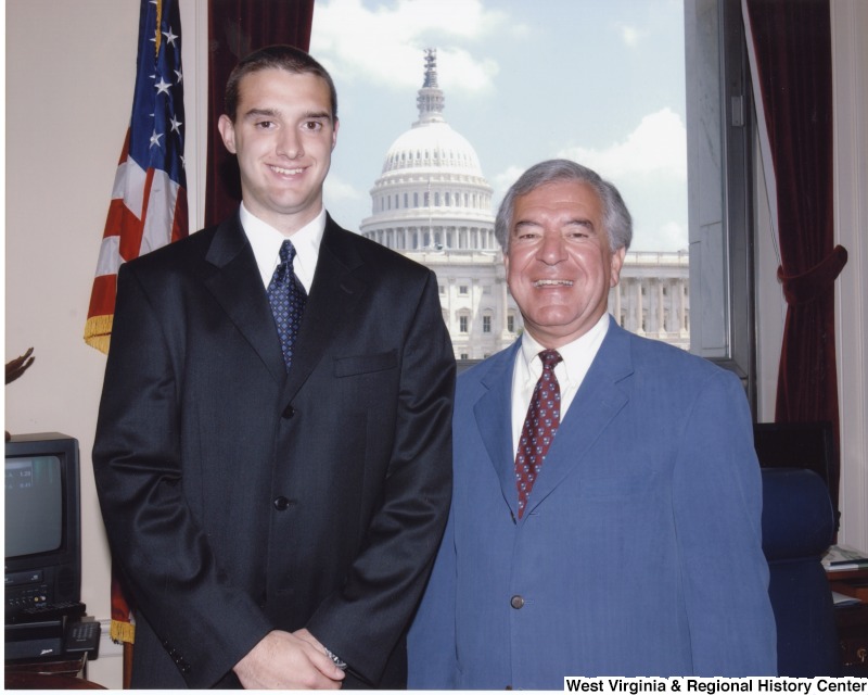 Photograph of Congressman Rahall with an unidentified male intern