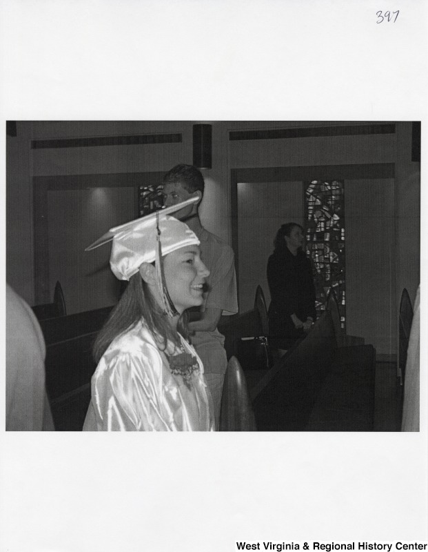 - Suzanne Rahall ears graduation regalia and walks for her graduation ceremony.
