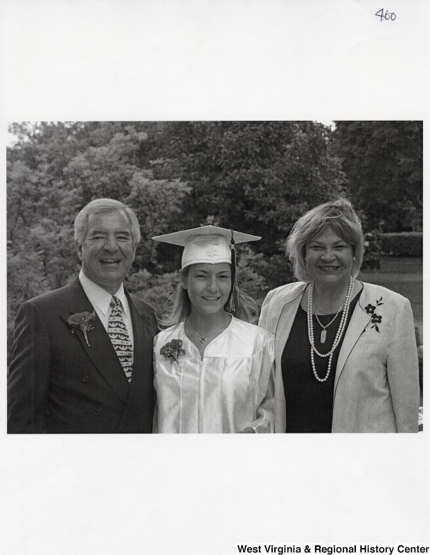- L-R: Representative Nick J. Rahall (D-W.Va.), Suzanne Rahall, unidentified womanThe three stand and smile for a photograph while Suzanne wears graduation regalia.