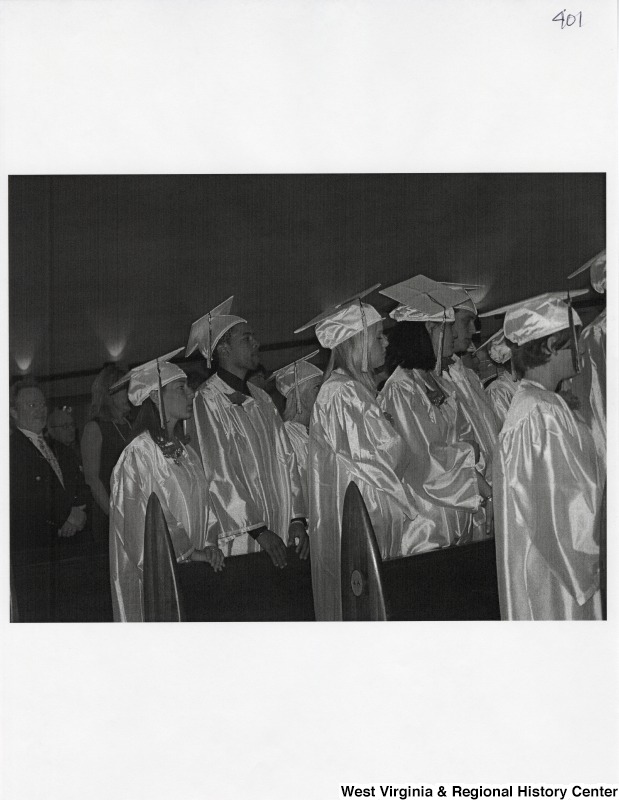 - On the left, Suzanne Rahall stands with a group of classmates for her graduation ceremony.