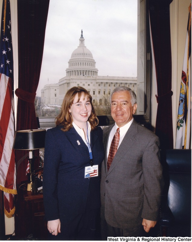 - Photograph of Congressman Rahall (D-WV) with Jaqueline Bryant of Presidential Classroom for Young Americans in his D.C. office.