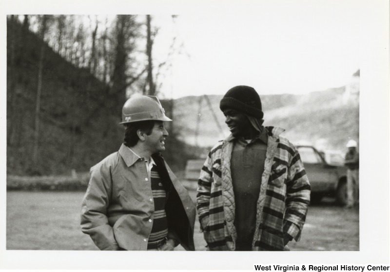 - Photograph of Congressman Rahall speaking to an unidentified man at the Hobet Coal Mine