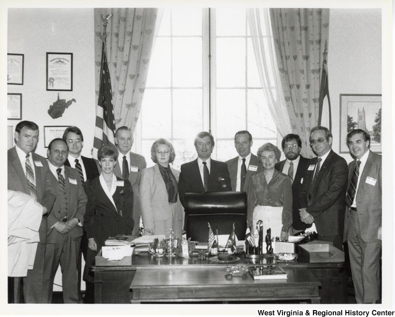 - Congressman Nick Rahall, II (center behind desk chair) with an unidentified group of people from the West Virginia-based broadcasters.