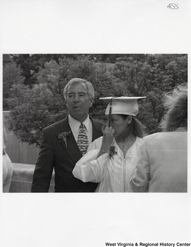 - Representative Nick J. Rahall (D-W.Va.) stands behind Suzanne Rahall in her graduation regalia.