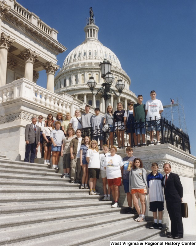 - At the top of the stairs, Representative Nick J. Rahall (D-W.Va.) stands with an unidentified group of school students in front of the Capitol building.