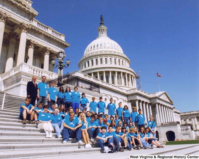 - Photograph of Congressman Rahall with Collins Middle School students in front of the U.S. Capitol building