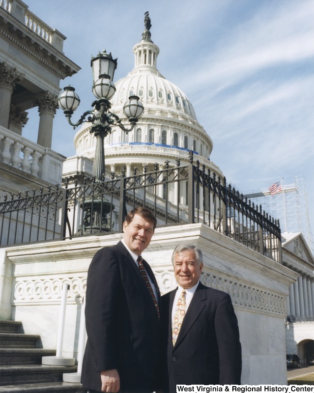 - On the right, Representative Nick J. Rahall (D-W.Va.) stands for a photograph in front of the Capitol building with Dr. Dan Angel, the president of Marshall University.