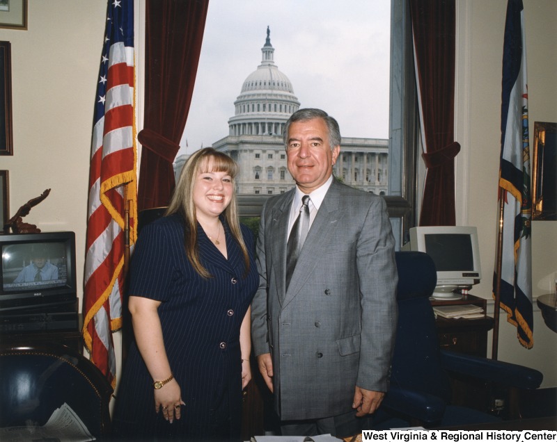 - On the right, Representative Nick J. Rahall (D-W.Va.) stands for a photograph with Toni Muney.