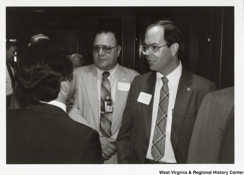 - Congressman Nick Rahall II (left, back turned to camera), an unknown man with the first name Bill (middle), and Congressman Harley O. Staggers, Jr. at an event.