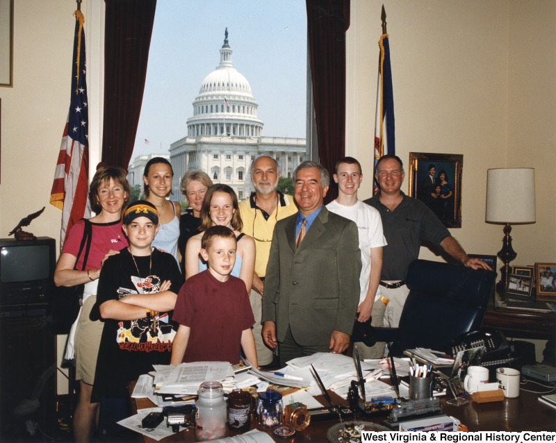 - Representative Nick J. Rahall (D-W.Va.) stands among nine unidentified people in his office.