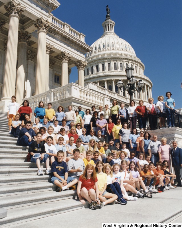 - On the far right, Representative Nick J. Rahall (D-W.Va.) stands in front of the Capitol building with students from Logan Middle School.