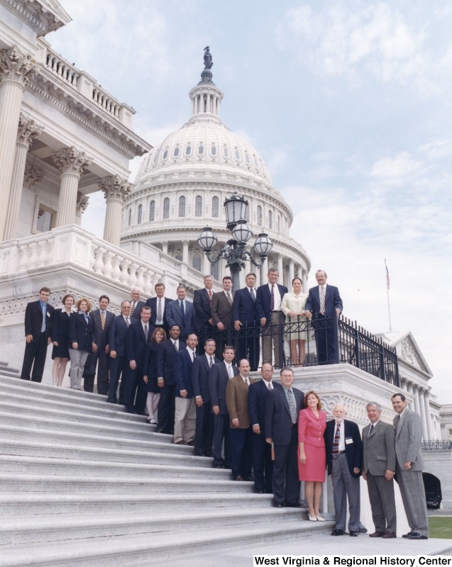 - On the far right, Representative Nick J. Rahall (D-W.Va.) stands in front of the Capitol building with a group of people from Ashland Oil.