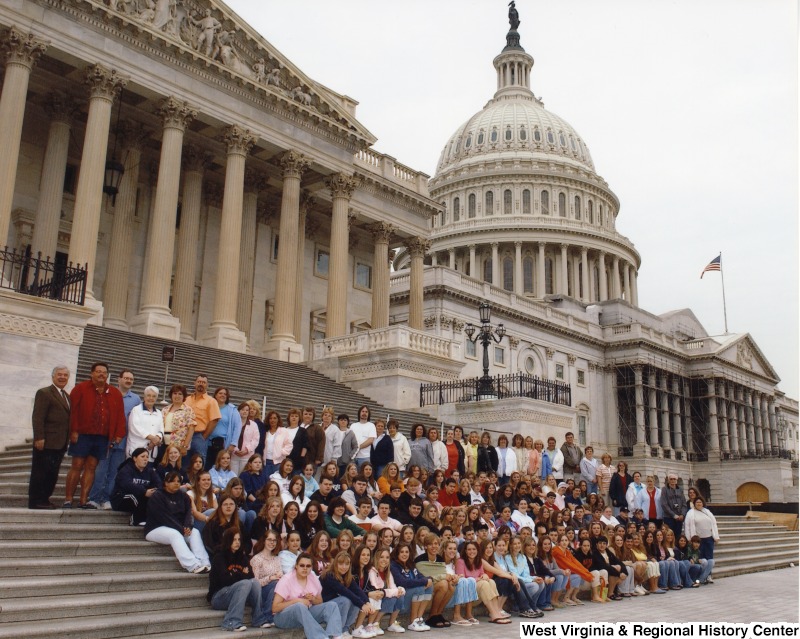 - Photograph of Congressman Rahall with Richwood High students in front of the U.S. Capitol building