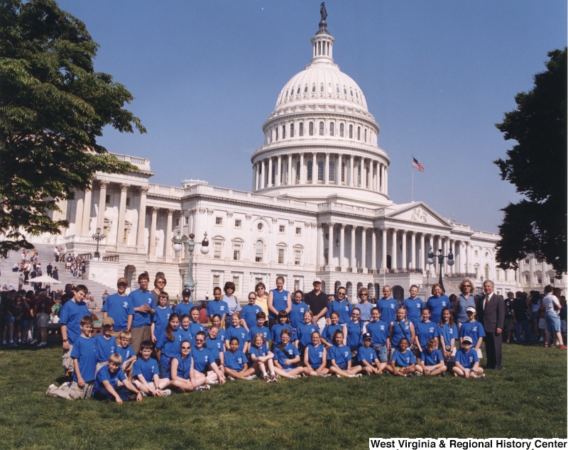 - On the far right, Representative Nick J. Rahall (D-W.Va.) stands in front of the Capitol building with a group of students from Lewisburg Elementary School.