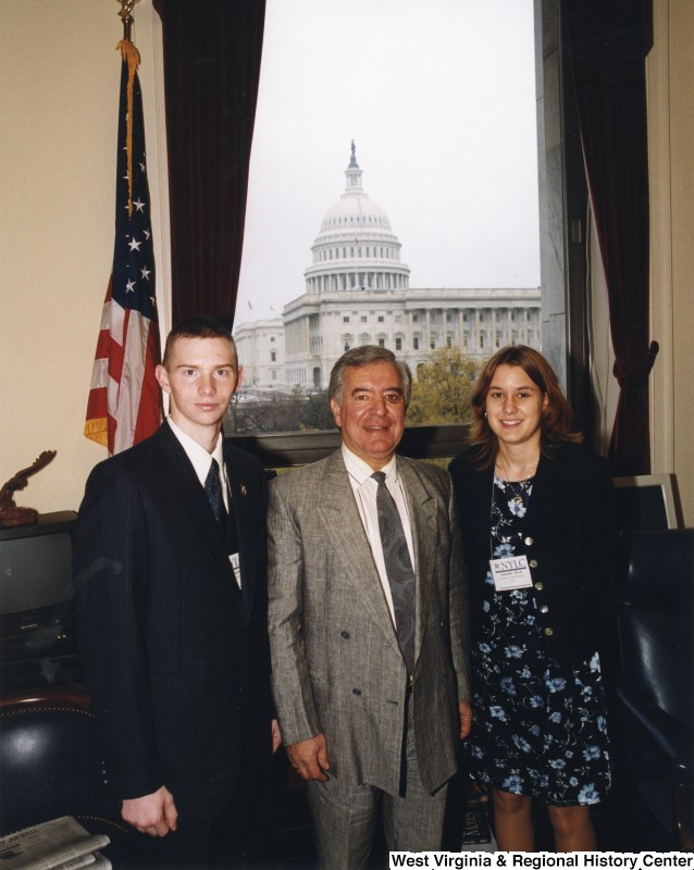 - L-R: William Kuhn, Representative Nick J. Rahall (D-W.Va.), Amanda BarieCongressman Rahall stands for a photograph with two young people from the National Young Leaders Conference.